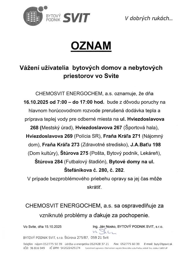 © BYTOVÝ PODNIK SVIT, s.r.o.